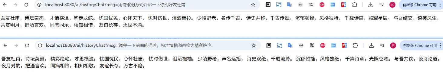 public List<Poem> fluxGenV2(@RequestParam(value = "msg", defaultValue = "你好") String msg) {