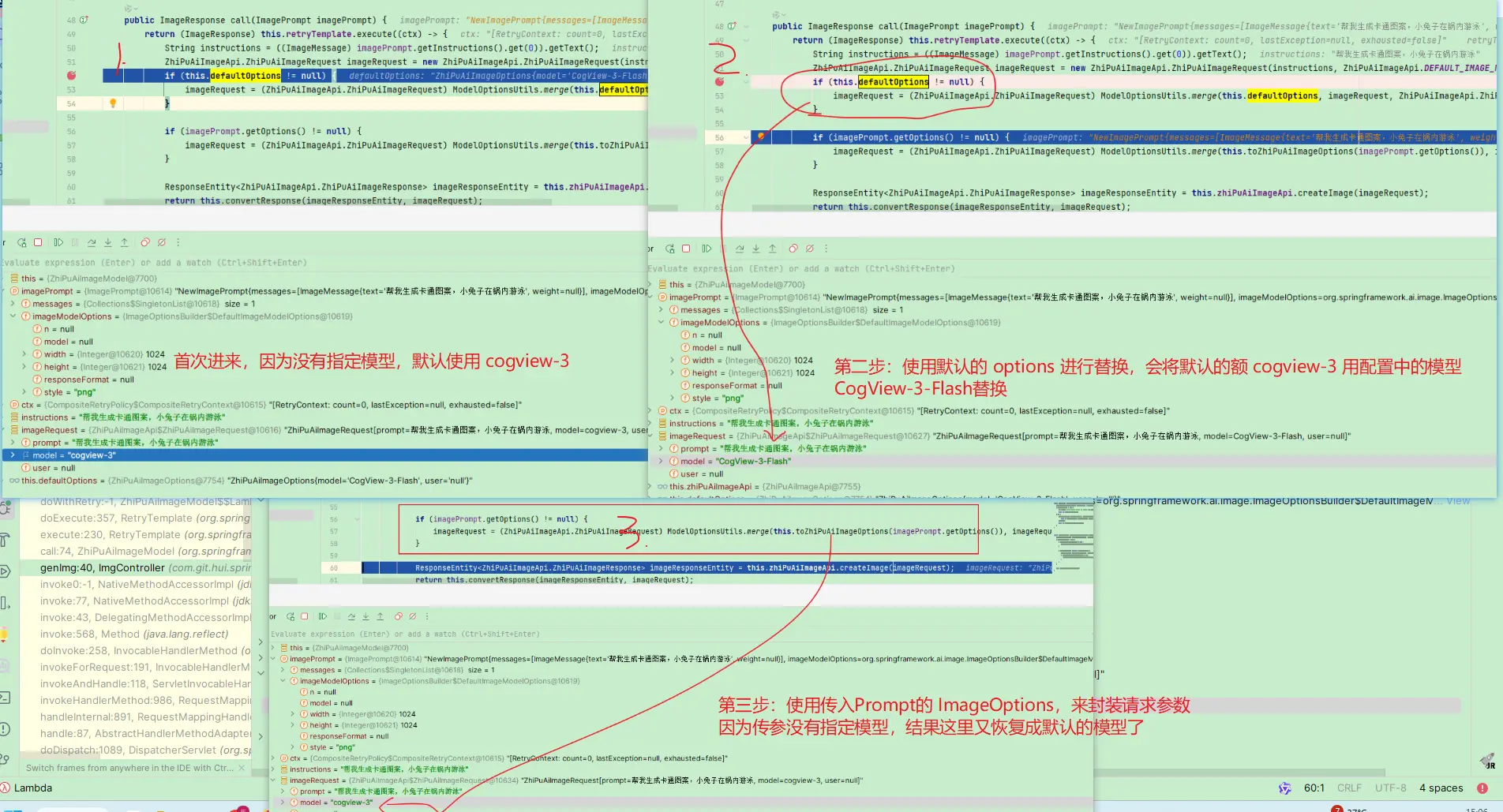 ImageOptions中model参数,比填,不然不会使用配置中默认指定的CogView-3-Flash