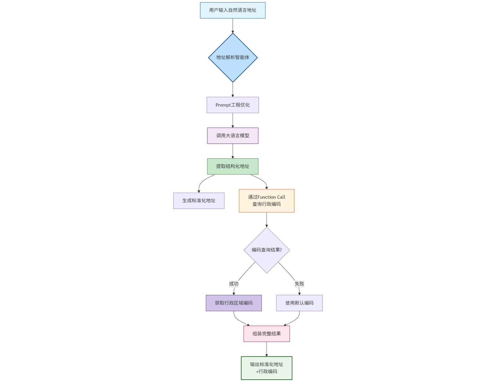 note[📌 核心逻辑:通过 Prompt 约束+Function Call 实现自然语言地址→标准化地址+行政编码的转化]:::noteNode