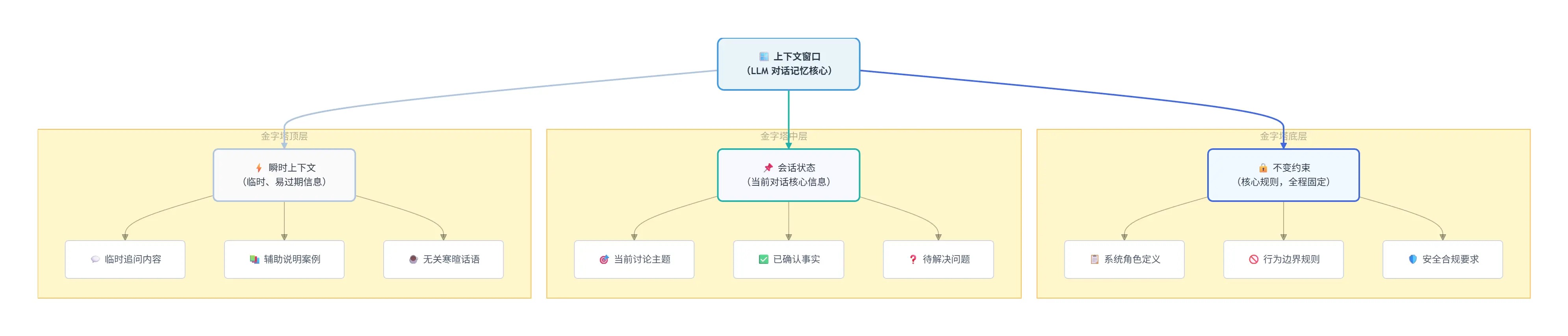 多轮对话的可靠性,从来不取决于“上下文窗口有多大”,而取决于“高优先级信息是否能稳定地影响模型决策”。不变约束的坚守、会话状态的精准同步、瞬时内容的合理舍弃,三者共同构成了上下文管理的核心工程逻辑。