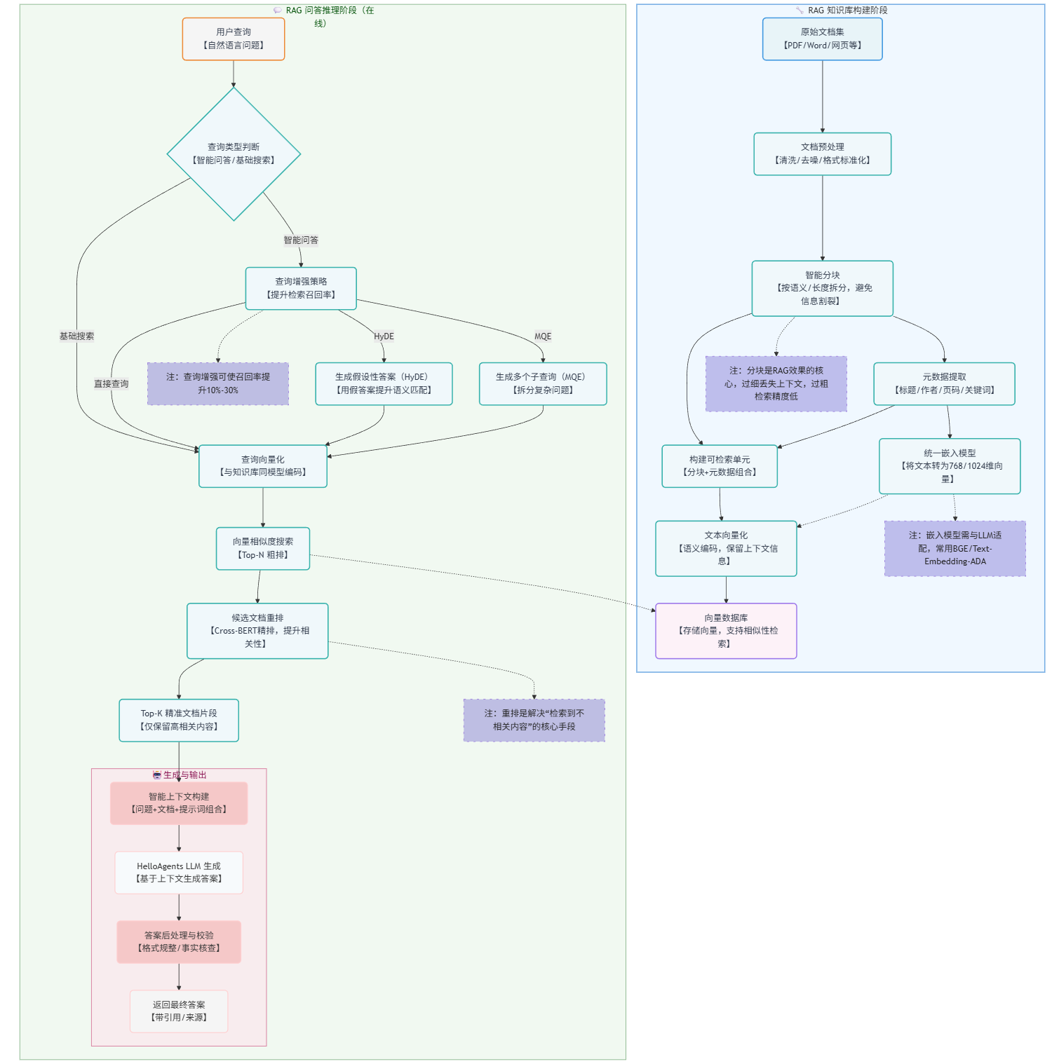 - 文档分块:将长文档合理分块,保持语义完整性的同时便于检索