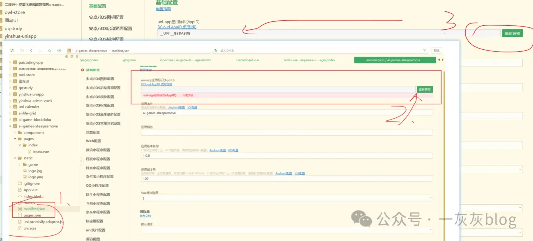 将appid改为上面文件夹名(也可以直接在uniapp的后台查看appid)