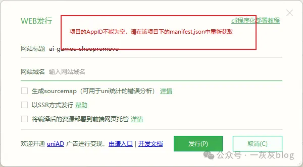 Hbuilder ,一次点击 发行 -> 网站PC Web 或手机H5 如果出现下面的异常,则按照下图方式进行修正