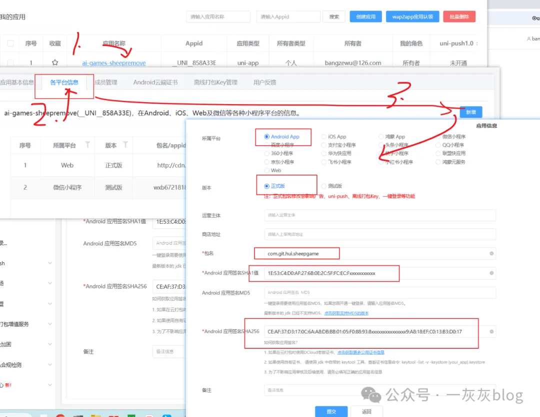 - 应用签名 SHA1, SHA256 ---> 这个是基于你打包时的签名证书生成的 (后续android输出篇教程详细介绍)