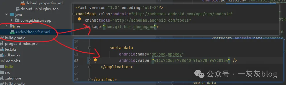 - 修改AndroidManifest.xml中包名和dcloud_appkey