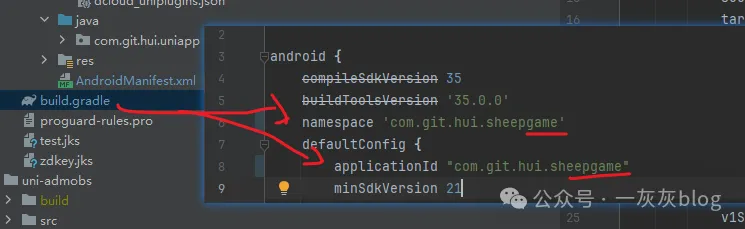 - 修改build.gradle中的包名
