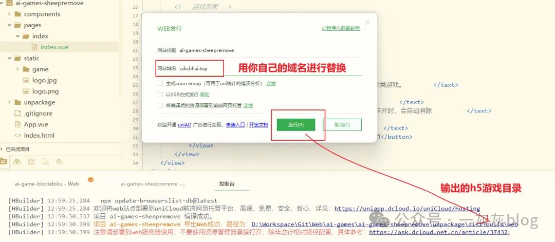Step3. 发行到自己的服务器或者OSS托管