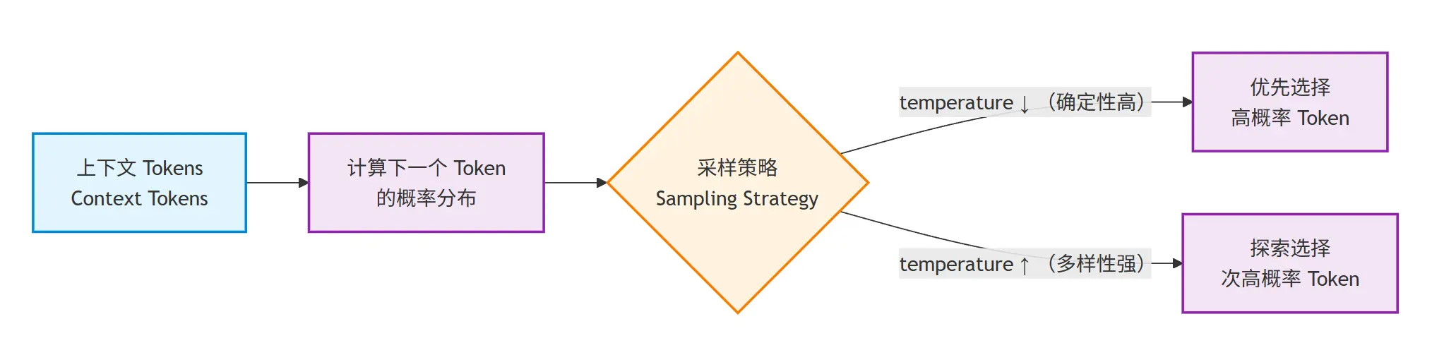 - 输出:下一个最可能出现的 token