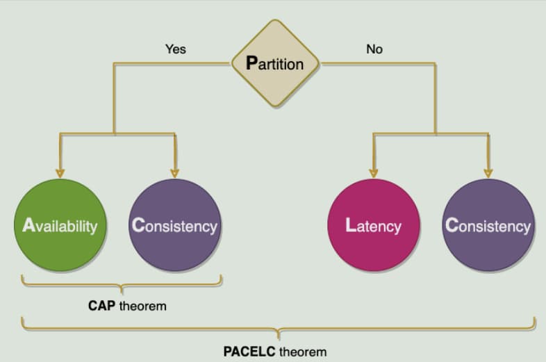 - 否则('E'),当系统在没有分区的情况下正常运行时,系统可以在延迟('L')和一致性('C')之间进行权衡。