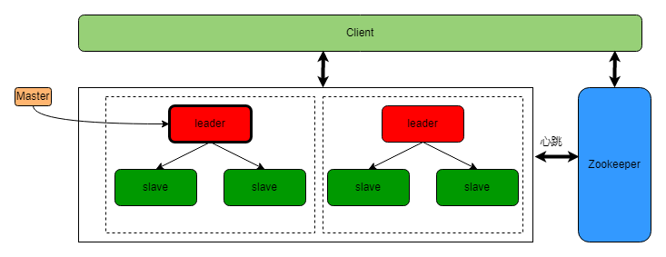 集中式集群模式下,通常会引入一个中心节点作为集群的管理者,由管理者来进行集群状态管理、故障处理以及元数据维护等,其它节点只需响应数据请求,而无需知道集群中其它节点的情况。典型的解决方案都会借助于zookeeper分布式协调服务来进行集群管理,比如Hbase、kafka等。