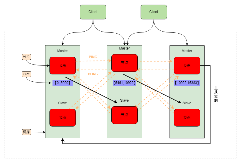 通常而言,数据的可靠性都是基于多副本机制来解决的,即构建主从模式,为每个主节点部署多个slave从节点,当主节点故障时由从节点顶替。