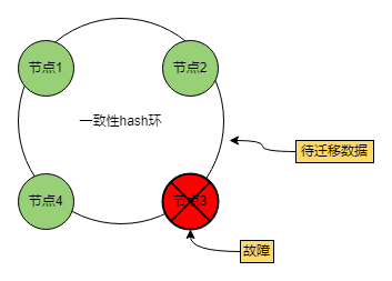 一致性hash的优势在于当进行扩缩容时,不会破坏全局的映射关系,而导致整个rehash,发起全局的数据迁移,而只会影响局部数据的映射关系。比如缩容减少一个节点,因为第一层映射依然保持不变,原来的请求该分配到哪个节点还是在哪个节点上,只是改变了第二层从环上到节点之间的一个局部映射关系。从环上来看,只会影响这个节点的上一个节点到这个这个节点的这一段弧区间上,整个环上的其它区间由于第一层关系不变,其映射关系不会受到影响。原来去掉的这个节点之间负责的那一段弧上请求,会全部顺移到它的下一个节点,我们只需要把去掉节点负责的数据迁移到下一个节点即可,其它的所有节点不用做任何变更。