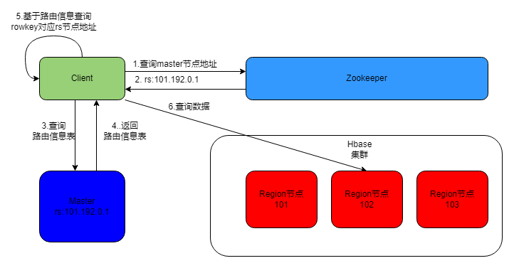 如下图所示,HBase集群中的读取流程大致如下所示: