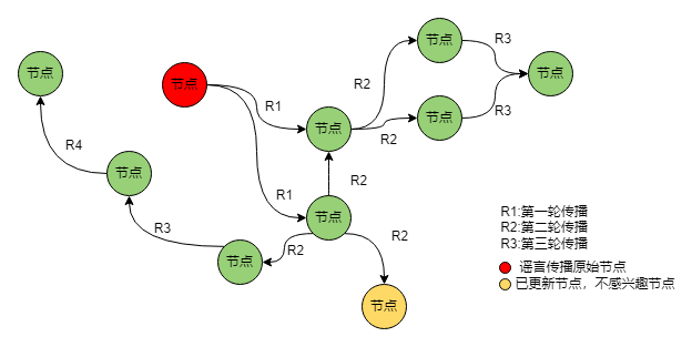 (1)容错。Gossip 协议具有天然的分布式系统容错特性,集群中任何节点的状态发生变化,例如上下线都不会影响 Gossip 消息的传播,且当节点重新上线后,依然会接收集群内其他节点的状态数据,并最终与其他节点达成一致。