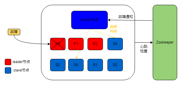 一般来说,对于引入第三方协调服务的存储系统来说,会事先在集群中选举一个Master,此master并非我们所说的主从复制中的leader副本节点。以kafka为例,在Kafka集群中这类节点称之为Controller。当节点发生故障时,会由ZK将故障通知至Controller节点,此时触发controller节点进行故障转移。