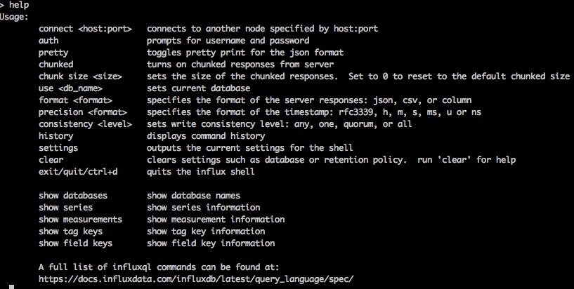 官方也给出了它的使用文档,有兴趣的可以参考: InfluxDB command line interface (CLI/shell)