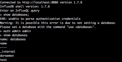 因为直接使用前面的方式输入用户名和密码的方式,并不安全,所以推荐的方式是直接influx进去之后,使用auth来权限校验,这种思路和redis-cli的差不多