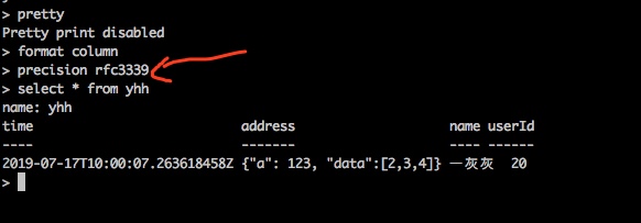 直接输入: precision rfc3339