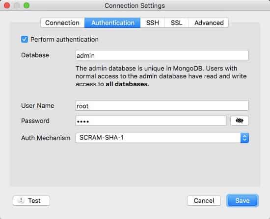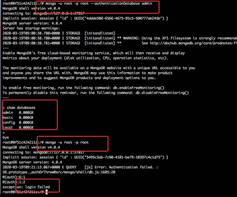 mongo -u root -p root --authenticationDatabase admin