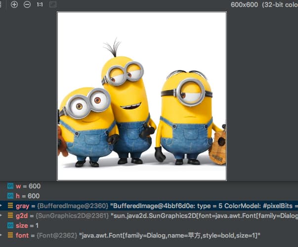 注意上面的实现,在会字符的时候,先取出源像素点的色彩,然后重新设置给g2d,这个int转color也比较简单,实现如下