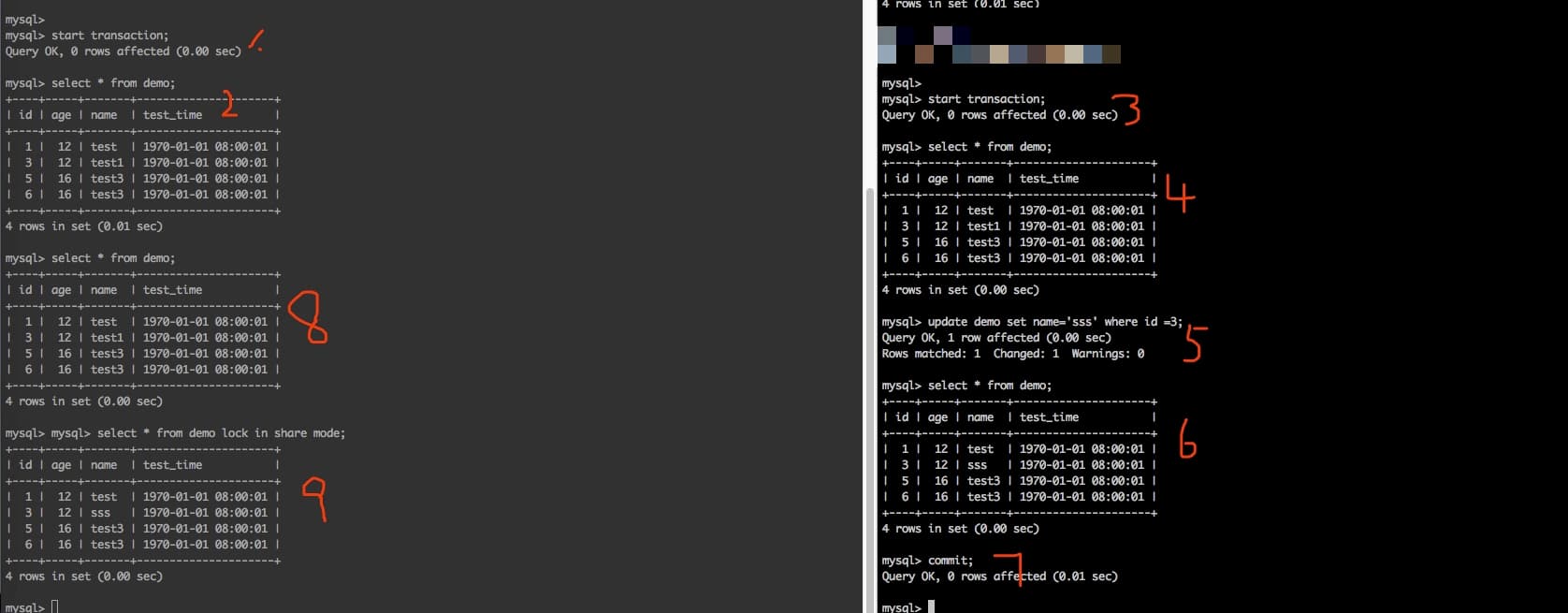 - 从锁的角度来看,步骤1、2虽然开启事务,但是属于快照读;而9属于当前读;他们读取的源不同,应该不算在幻读定义中的同一查询条件中