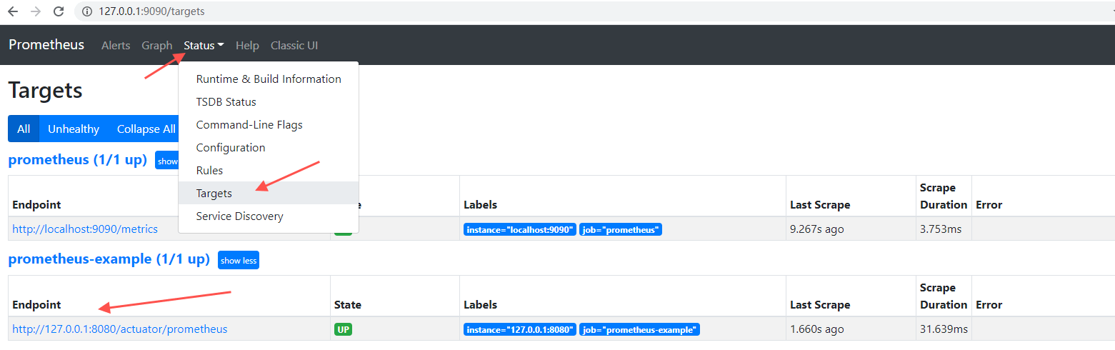 到此,springboot应用的监控就算是完成了;接下来配置一下prometheus的服务端