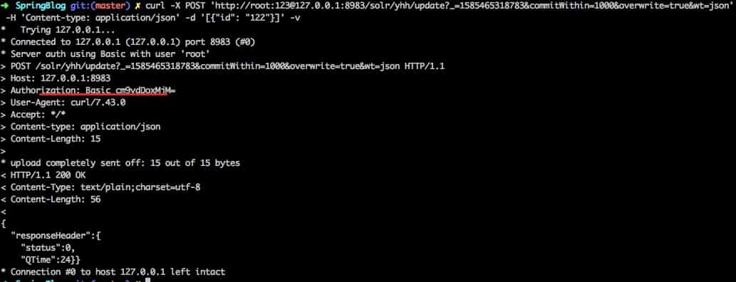 直接通过curl来测试一下更新solr操作,正常返回,并没有问题,那么这个问题到底啥原因,究竟是谁的锅,请敬请期待后续问题定位盖锅定论