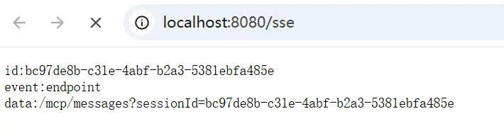 启动项目,访问http://localhost:8080/sse, 可以看到MCP Server已经启动了