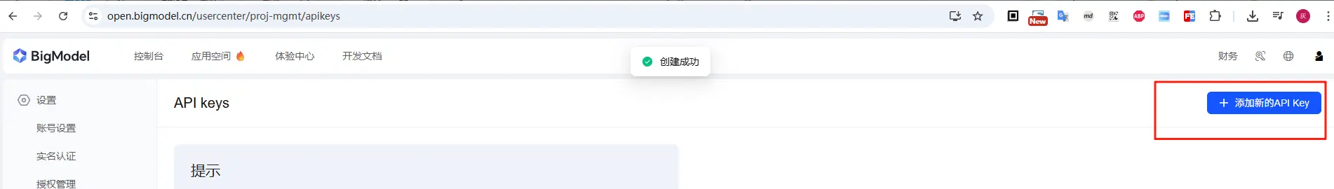 在智普的开放平台获取密钥:https://open.bigmodel.cn/usercenter/proj-mgmt/apikeys