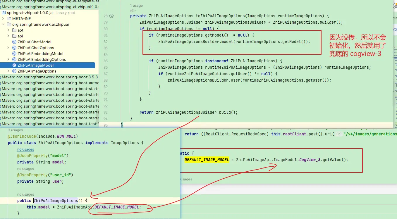ImageOptions中model参数,比填,不然不会使用配置中默认指定的CogView-3-Flash