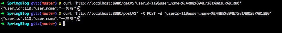 * curl 'http://127.0.0.1:8080/postV1' -X POST -d 'user_id=123&user_name=一灰灰'