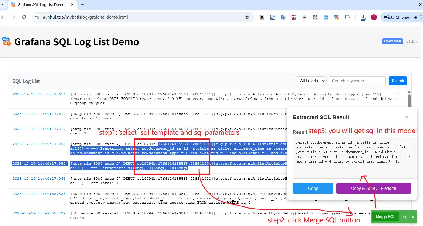 - 安装插件:从Chrome应用商店安装 MyBatis SQL Log Merger