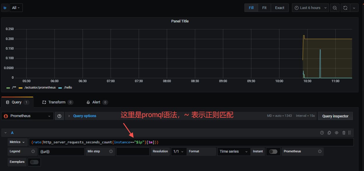 为了支持使用全部,我们的metrics的表达式,就不能使用之前的精确匹配了,需要改成正则方式